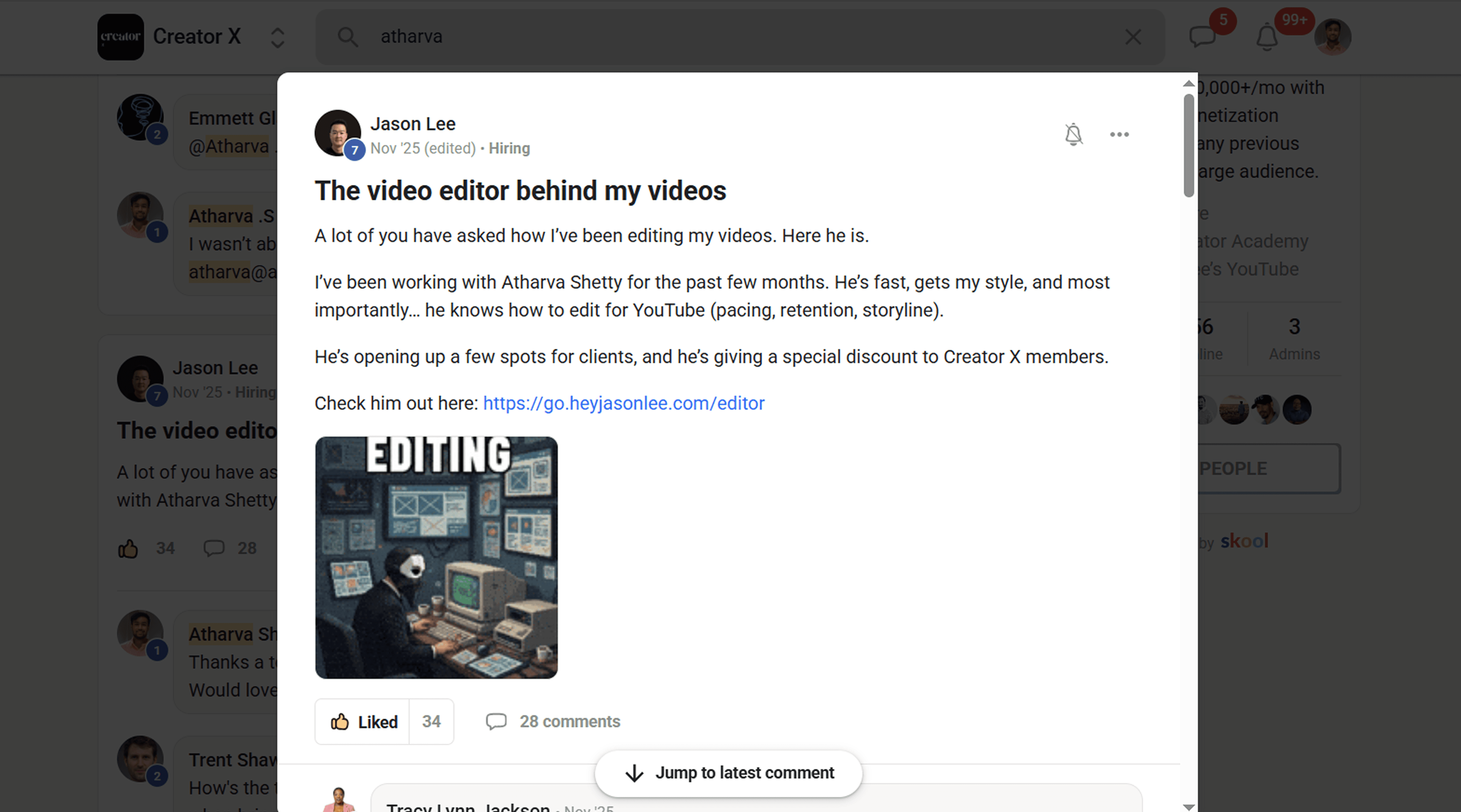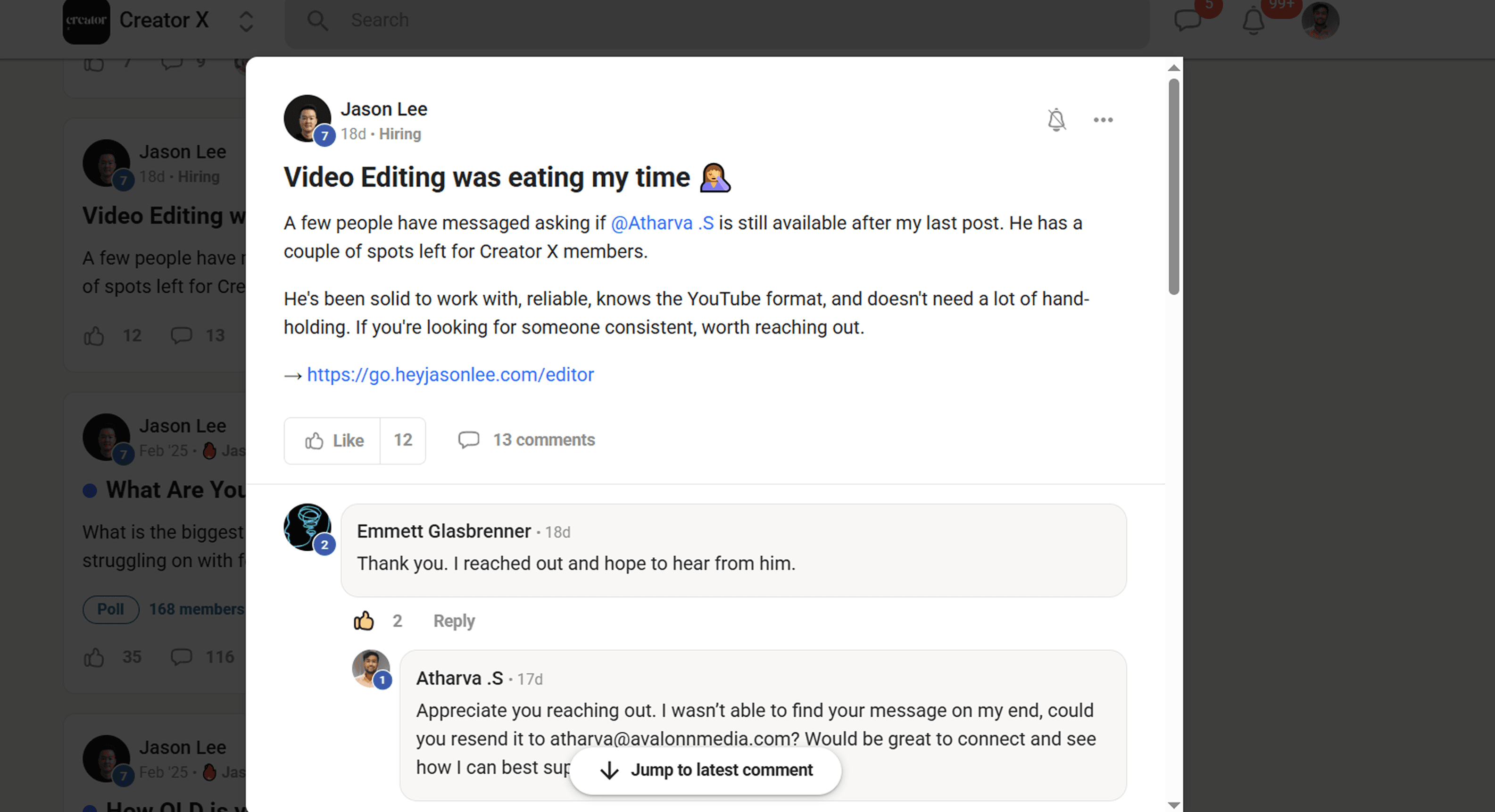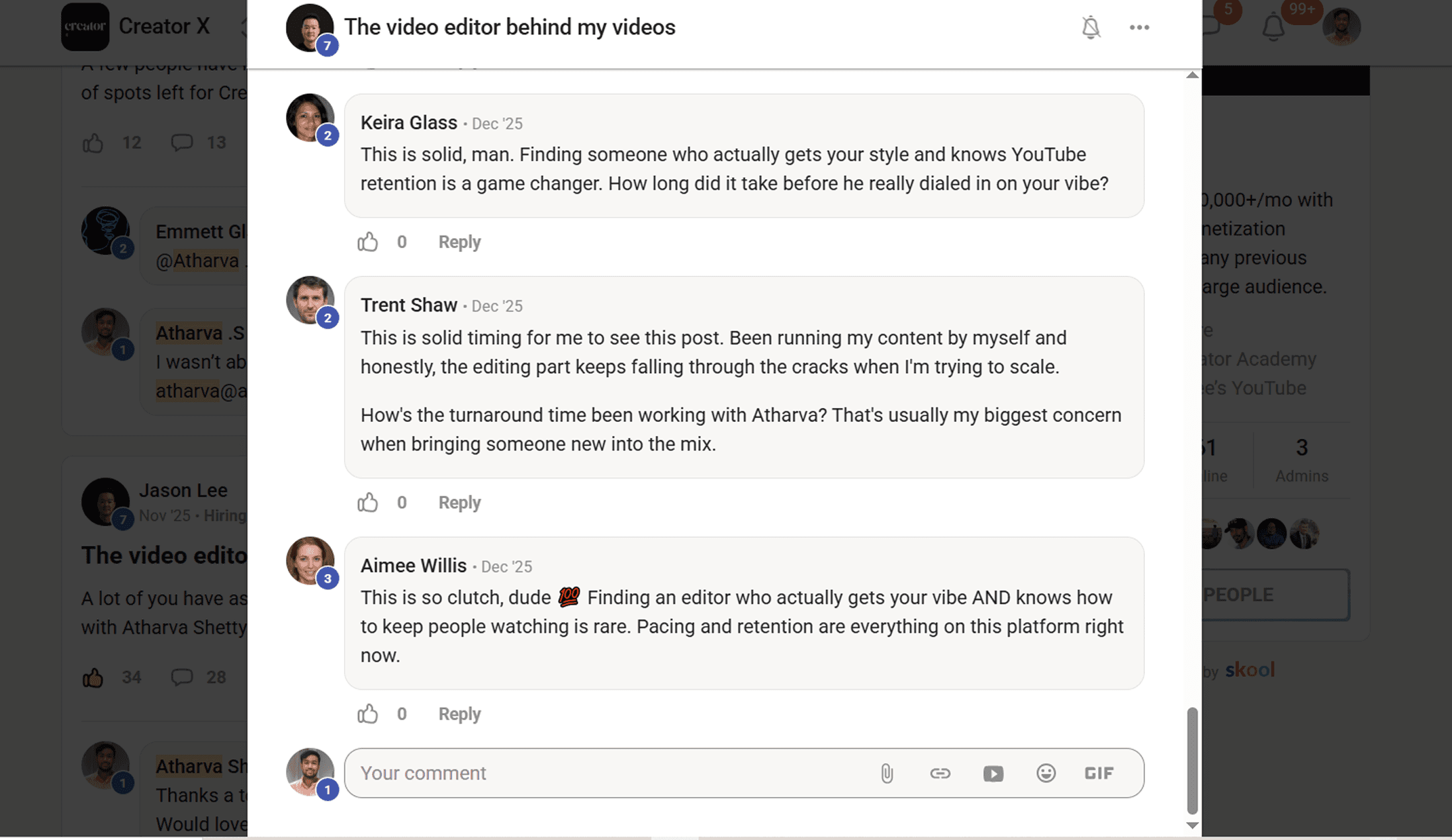 We handle short-form, long-form, newsletters, and even community setup (Skool or Whop).