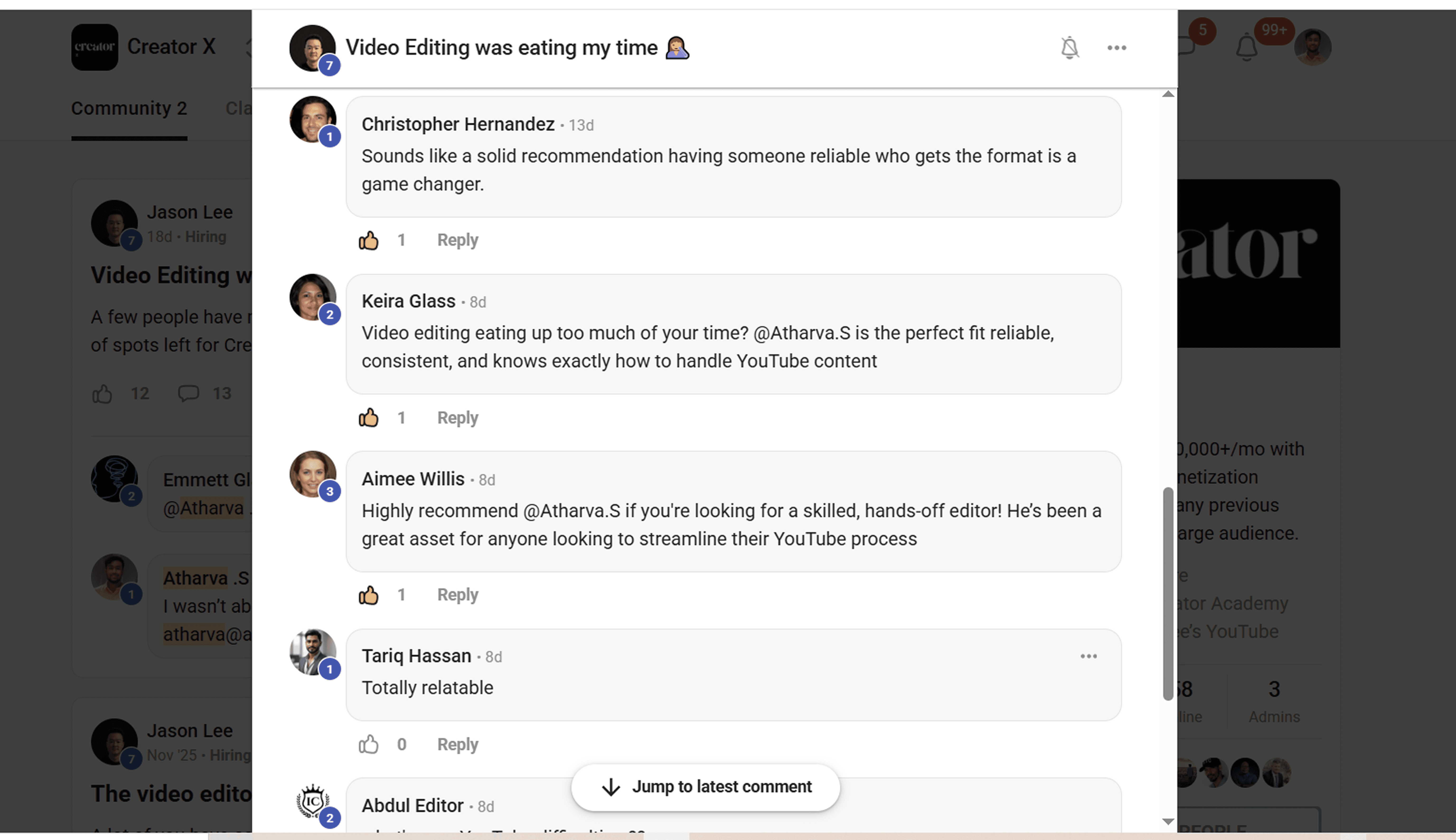 Part of the core team behind creator brands that scaled from 30K → 1M+ in under 6 months. Expert in retention-driven editing, storytelling, and content that drives clicks and watch time.